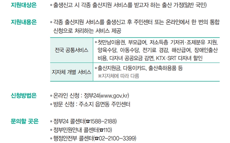 행복출산 원스톱 서비스 지원대상 및 지원내용